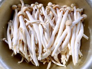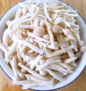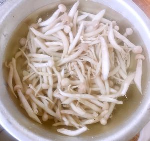 茶树菇摘除根蒂清洗干净沥干水份备用