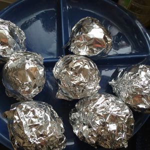 鸭蛋把尖头磕破倒出蛋白,只留蛋黄,孔约1元硬币大小