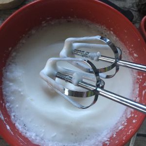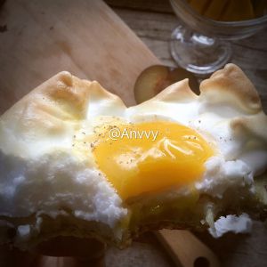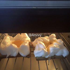 蛋白打发至硬性发泡状态,用勺子在吐司上做出云朵造型
