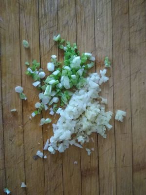 再切一些姜沫,蒜沫,和香葱沫,备用