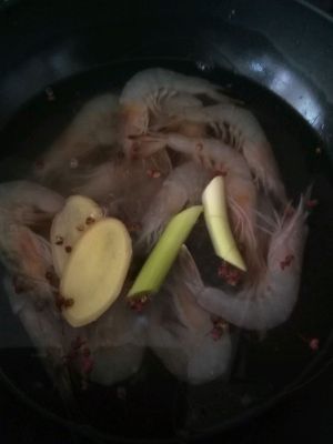水沫过虾即可,葱切2段,姜切3片,大概15粒花椒,放入水中,烧开后加两勺白酒,盖盖焖煮至虾变色,捞出