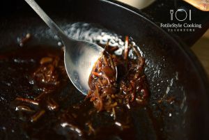 炒锅中入油,大火烧至七成热,放入风味豆豉酱,爆出香味,再放入干贝丝和虾干丝,煸炒2分钟即制成酱汁。