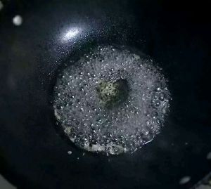 熬制时要不断搅拌,由大气泡变成密集小气泡。