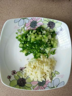 大蒜切成蓉,捣成蒜汁也行,葱切成末!