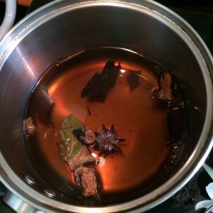 用以上各种香料及调味料用水煮开,约煮15分钟,各种味道释放在水中即可。