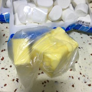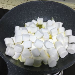 奶粉与棉花糖搅拌匀后加入腰果拌匀