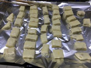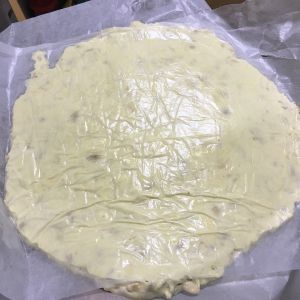 所有材料拌匀后平铺到油纸上 压扁(大概两厘米的样子)