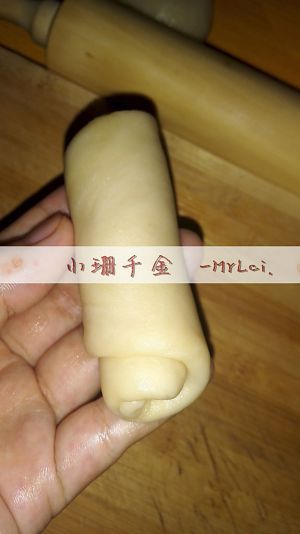 ㈥ 取其中一个小面团擀开成牛舌状 再卷起来,重复2次静置