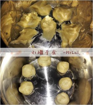 ㈢ 主面团和油酥馅平均分好成小团备用(此方是8个)