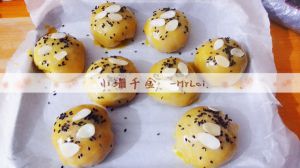 ㈨ 摆入烤盘(硅油纸)表面刷蛋液,撒芝麻 扁桃仁