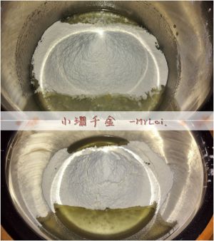㈠ 取两个盆子分别加入 主面团配料(清水63g+面粉150g+47g油)油酥馅配料(120g面粉+60g油)