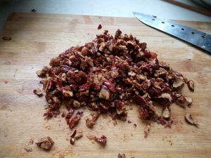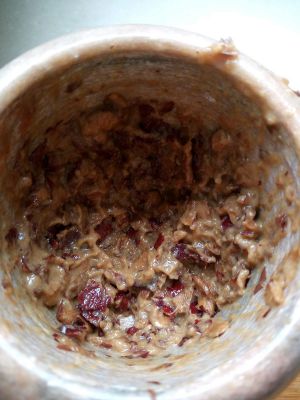 第二步,切碎的红枣放进捣蒜器里加点蛋清捣碎。(家里有豆浆机之类的也可以用,不过我懒得刷就用捣蒜器了,效果是一样的)