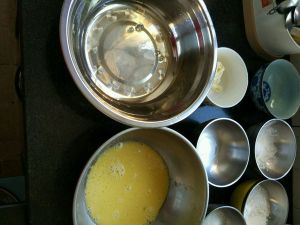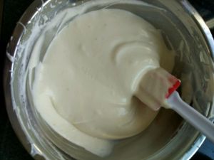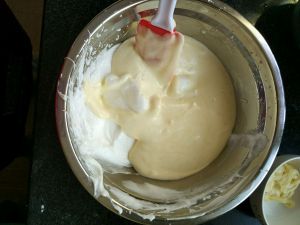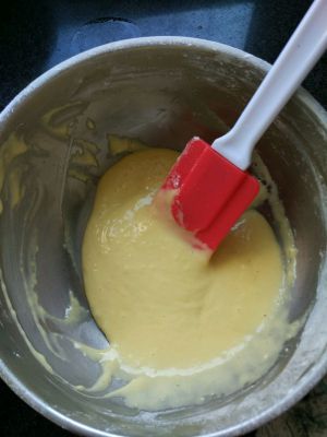 再加入剩下的蛋白霜二分之一左右,搅拌均匀