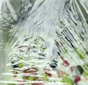 将酸奶倒入磨具,将巧克力和水果切丁,撒入磨具