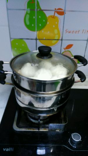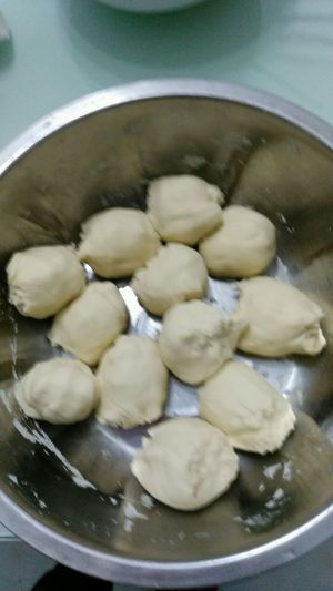 将发酵好的面团揉出多余空气,将光滑的面团纠成大小差不多的小剂子。