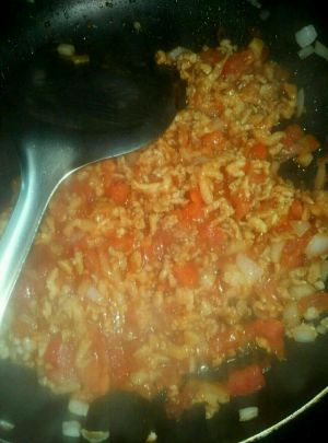把洋葱和肉炒香~放耗油~然后放番茄炒~之后放番茄酱~