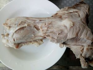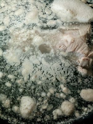 洗净的大骨头,冷水下锅,待水开后再煮5分钟。注:水开后会有血沫子,边煮边用汤勺把血沫子都打捞出去。