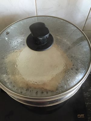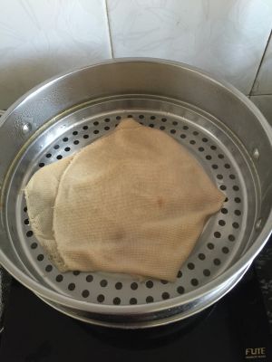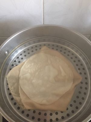 锅中加半锅水,开大火,上屉,屉布要湿润,而且把屉布折成比面饼略大