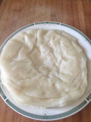 第一张饼因为最先放入,会比其他饼水多,凉一会,