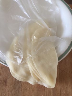 大约20…30秒,第一张饼变色,放入第二张,盖锅,依次放入