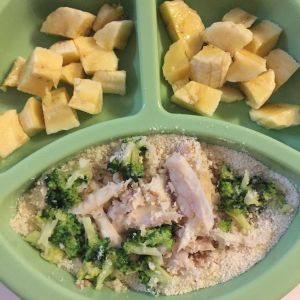 锅里放少许橄榄油大火加热,将扒皮鱼放入锅中转小火慢煎,煎至两面微黄后,倒入适量开水,放入葱和蒜,调入盐,小火慢炖收汁,八成熟时候放入西兰花,待汁水收干即可。将馒头渣盛入盘里,鱼肉剔除放入馒头渣,汁水倒入搅拌即可。