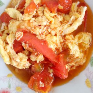 锅里加油烧到8分热,加入打散的鸡蛋,快速翻炒。成型后关火,倒入盘子。