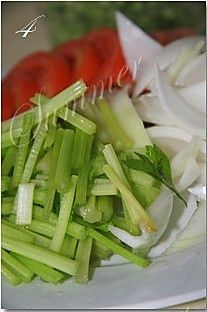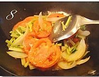 放入芹菜,翻炒均匀,再倒入番茄酱;(我这步忘了放番茄酱,在后面放的)