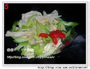加入红椒圈,翻炒几下,放盐、放鸡精适量,翻炒均匀就可以啦!