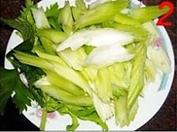 芹菜摘去老叶,撕去老筋,清洗干净沥干水分。