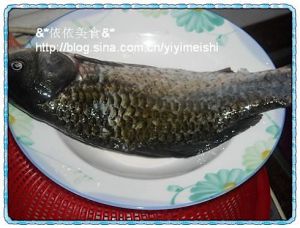 鲫鱼刮干净鱼肚里的黑膜,清洗干净后沥干水分;