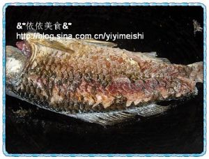 热油锅,用姜片擦锅,油温比较高的时候再放下鱼,慢火煎至两面金黄;