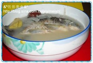 把鱼转进烧开的滚水里,放入蜜枣,大火煲20分钟后转中小火再煲20分钟才加入萝卜丝;(如果你喜欢把萝卜切成块的话,就在装中小火的时候放萝卜块,同样美味)