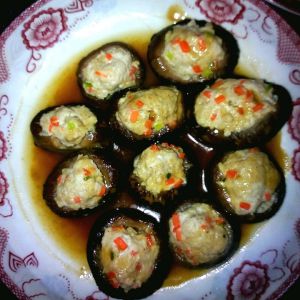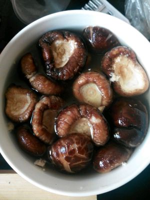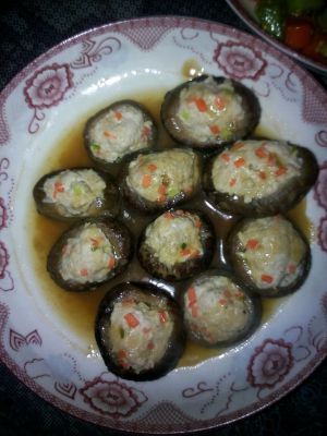 蒸好后,香菇会出汤,把汤汁倒到锅里,加一点盐,酱油,冷水溶一点水淀粉,煮开,给香菇勾芡,肉末酿香菇完成,好鲜啊