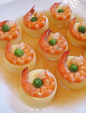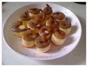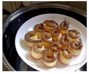 虾洗净剥出虾仁,用料酒、姜丝、食盐、蒸鱼豉油、淀粉拌匀