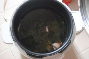 加入适量清水,放入高压锅,盖好盖子启动煲汤键
