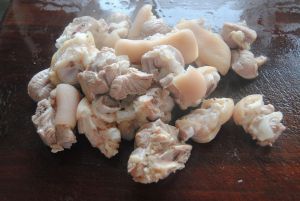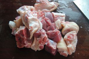 猪脚买的时候让摊贩烧毛砍大骨,回来自己洗净切成小块