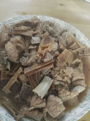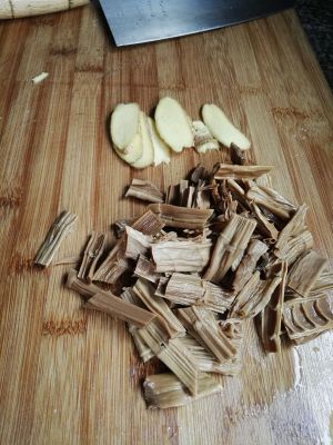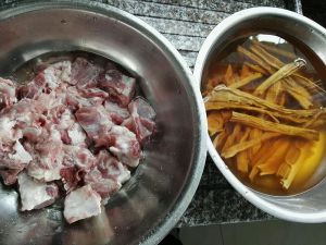 排骨切块洗净,笋干浸泡12小时以上洗净