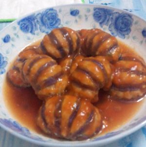 把调好的茄汁淋在灯笼茄上就完成啦(ง •̀_•́)ง