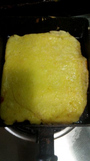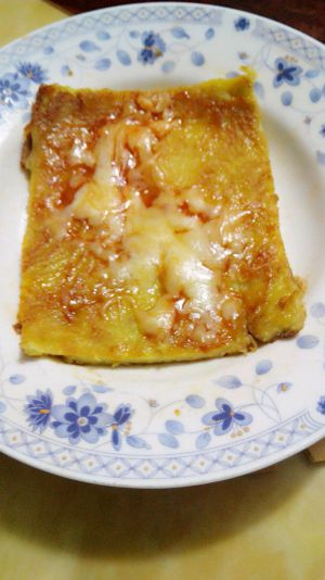 煎到8成熟的时候刷上番茄酱随后在洒上马苏里拉芝士……等芝士都融化后就可以出锅了