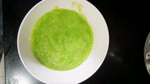 芹菜打成泥加入鸡蛋,面粉,盐,如果觉得很稠可以适当加点水调稀