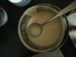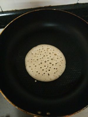 等到面表面出现小泡,并消泡出现小孔后,翻面