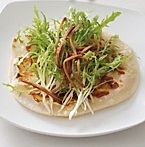 备好甜面酱或蒜蓉辣酱或混合,生菜,咸菜丝。出锅的饼抹一层酱,放生菜、咸菜丝,卷起即可。