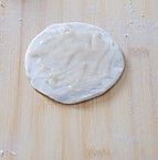 10g面粉+10g玉米油制成油酥,饧好的面分成六分。取一份,按扁,擀至包子皮厚度,抹上一层油酥(留出1cm的圈不抹)