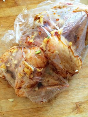 把调料和鸡翅放入保鲜袋 用手抓匀 放入冰箱 腌制最少2个小时以上