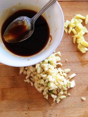姜蒜切粒 生抽 老抽 耗油 蜂蜜 胡椒粉 盐放在碗中搅匀