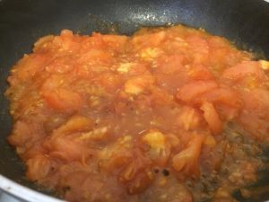 待柿子成这个样子,放入适当的盐 糖 一点海鲜酱油和鸡精。翻炒一下就可以出锅了。