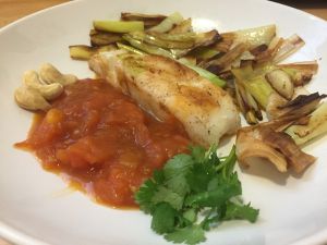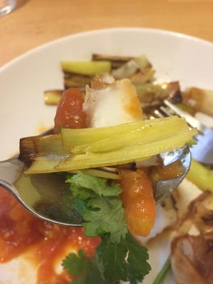 待鱼肉煎熟就可出锅 淋上番茄酱,吊坠些香菜。美味又营养的午餐,开动吧!