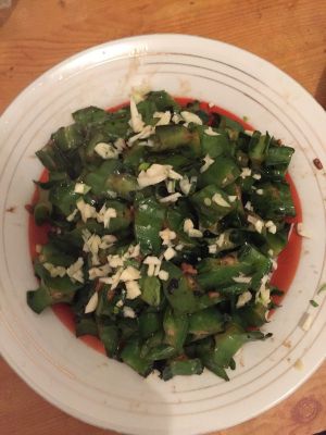装盘后将剩下的一半蒜蓉撒在菜中,就是成品啦,吃友们可以尽情享用啦,脆辣爽口,比荷兰豆好吃多啦^_^