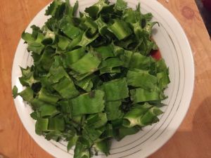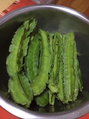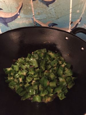 锅中倒油烧六成热,放入一半蒜蓉和干辣椒段煸炒出香味,放入四角菜翻炒,加一点水防止干锅,放一点蚝油,再放盐调味就可以起锅啦~~