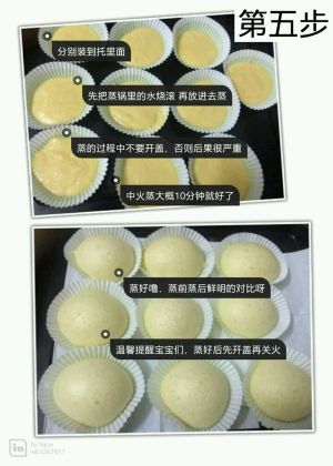 拌好了就分别装到蛋糕托上啦,这会就去热蒸锅,把蒸锅里的水热滚了就可以把蛋糕放上去蒸啦。